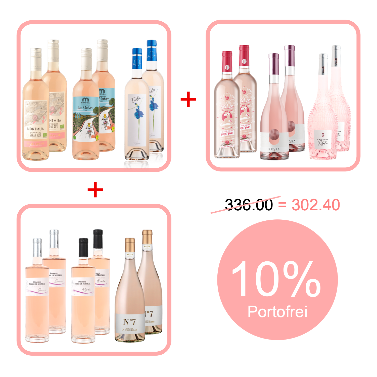 Sommer, der bleibt Dieses Degustationspaket vereint drei charaktervolle Rosé-Weine in perfekter Harmonie und lädt dazu ein, die feinen Nuancen südlicher Leichtigkeit neu zu entdecken.